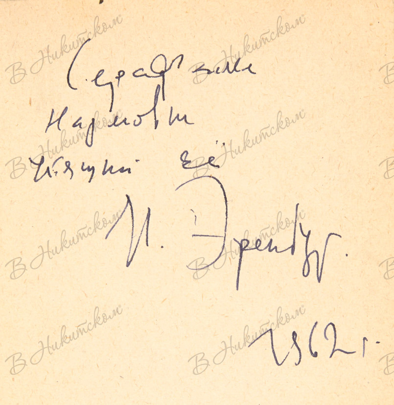 Эренбург, И. [Автограф?]. Люди, годы, жизнь. М.: «Советский писатель», 1961.