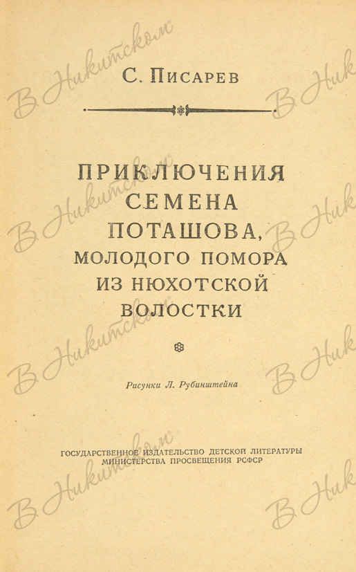 [Рамка из серии «Библиотека приключений и научной фантастики»]. Писарев, С. Приключения Семёна Поташова, молодого помора из Нюхотской волостки / рис. Л. Рубинштейна. Л.: ДЕТГИЗ, 1961.
