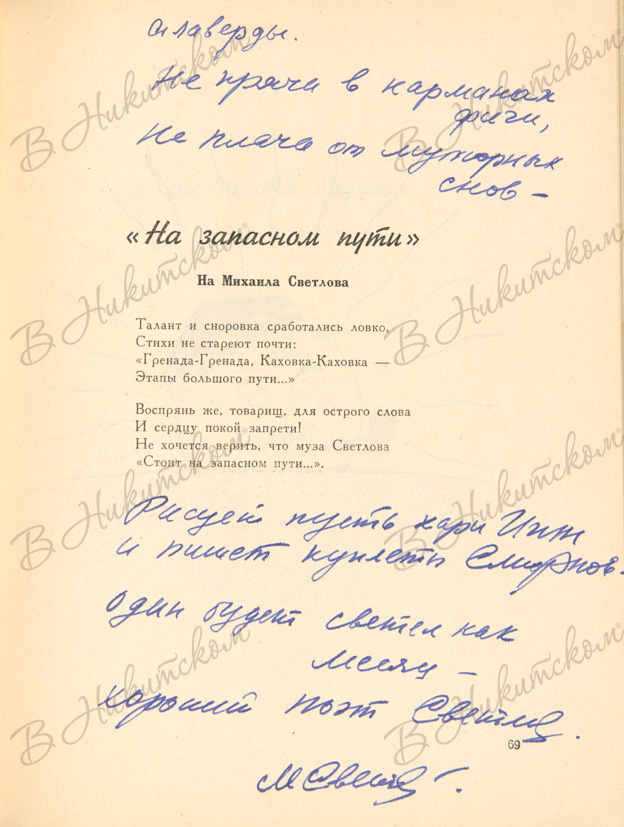 [Автограф поэта М. Светлова]. Смирнов, С. Игин, И. Добро пожаловать… Пародии, шаржи, эпиграммы. М.: «Молодая гвардия», 1962.