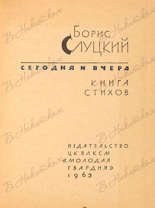 Слуцкий, Б. [Автограф]. Сегодня и вчера. М.: «Молодая гвардия», 1963.