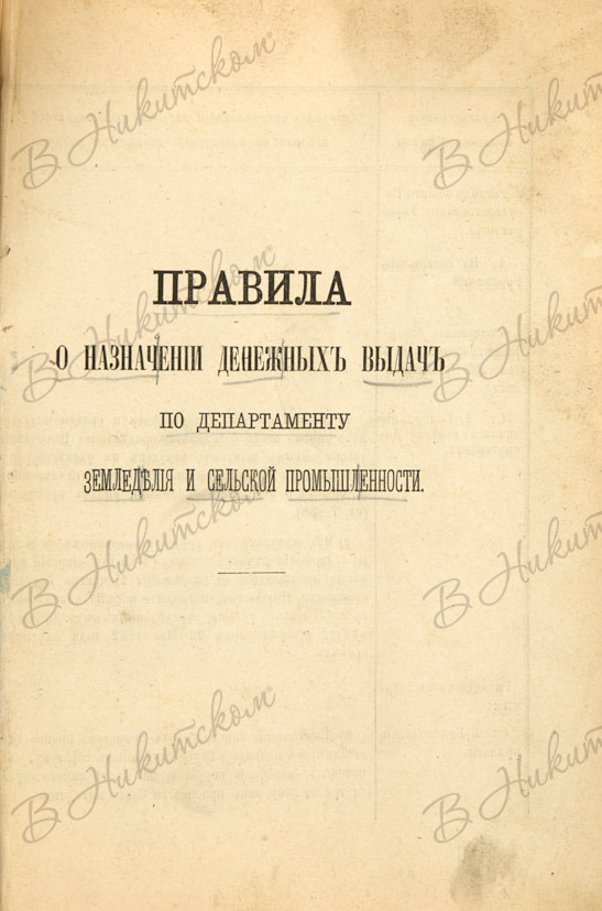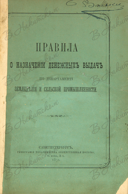 Правила о назначении денежных выдач по департаменту земледелия и сельской промышленности. СПб.: Типография Товарищества «Общественная польза», 1871.