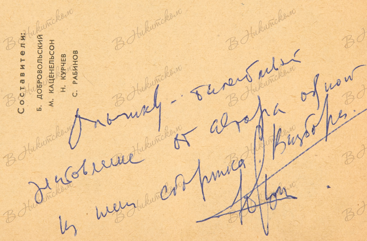 [Автограф Ю. Визбора]. Спутник туриста. Песенник. Л.: Издательство «Музыка», 1966.