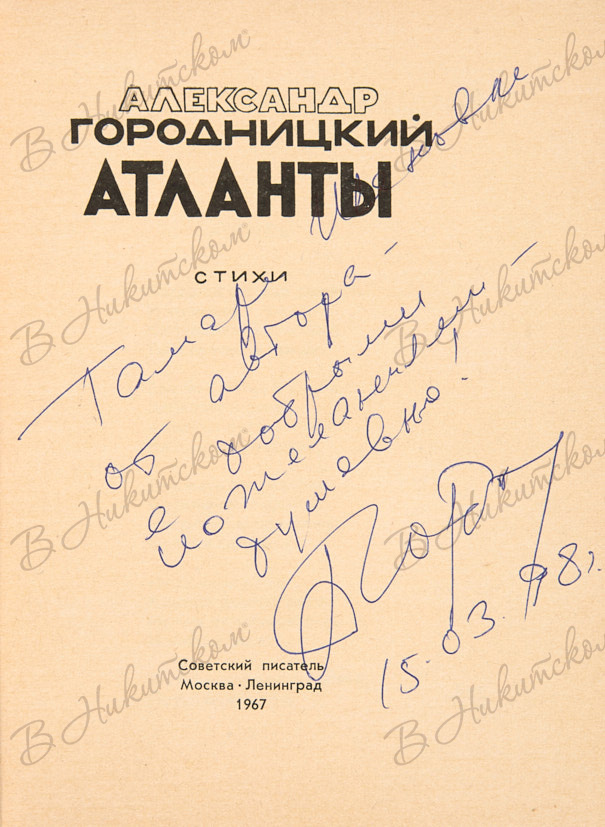 Городницкий, А. [Автограф]. Атланты. М.; Л.: «Советский писатель», 1967.
