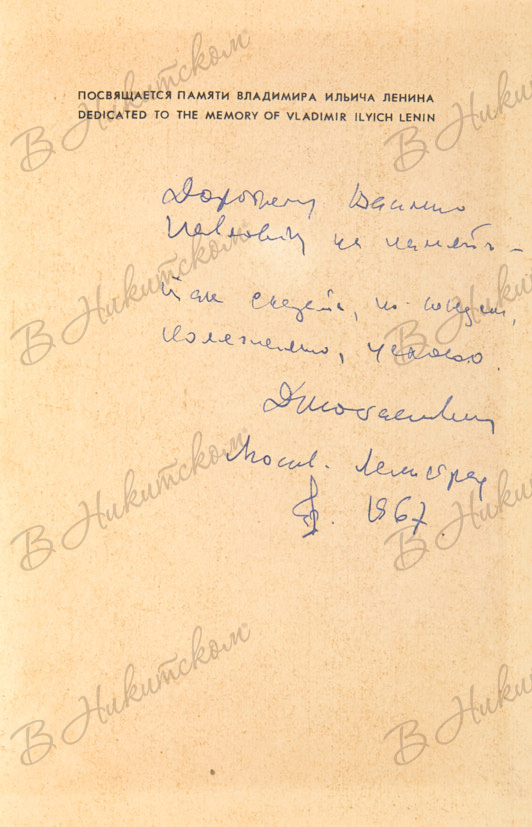 [Автограф композитора Д. Шостаковича]. Д. Шостакович. Двенадцатая симфония. 1917 год. Партитура. М.: Издательство «Музыка», 1967.