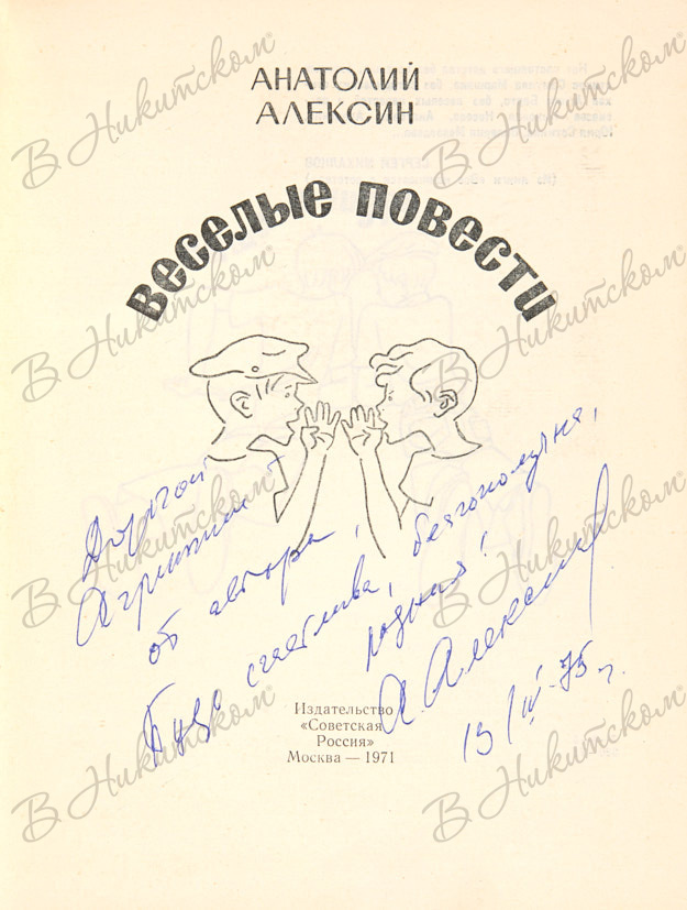 Алексин, А. [Автограф]. Весёлые повести. М.: Издательство «Советская Россия», 1971.