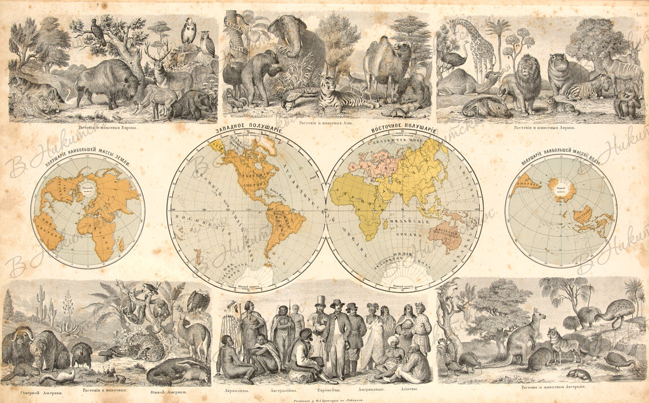 Линберг, А. Учебный атлас всеобщей географии. Лейпциг: Печатано у Ф.А. Брокгауза, 1874.