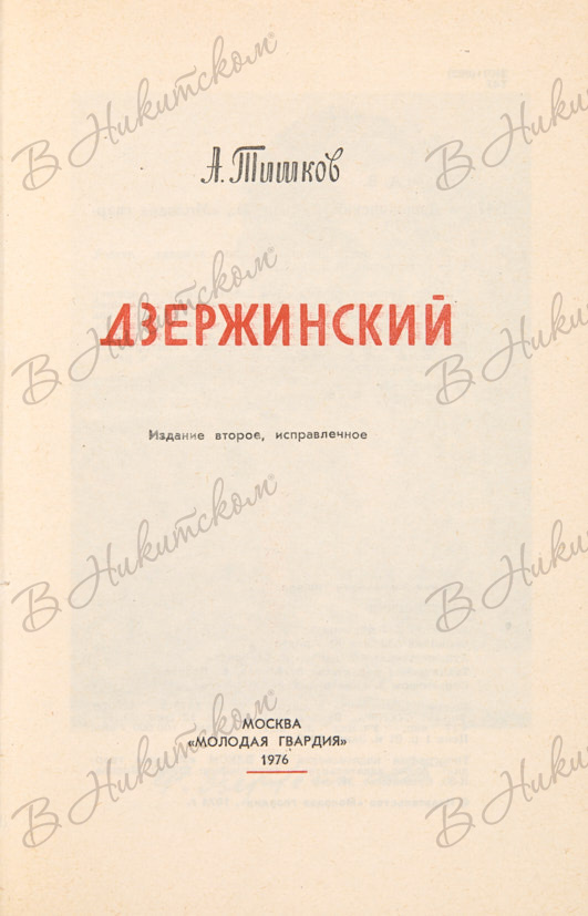 [Автограф Ю. Андропова?]. Тишков, А. Дзержинский. Издание 2-е, исправл. М.: «Молодая гвардия», 1976.