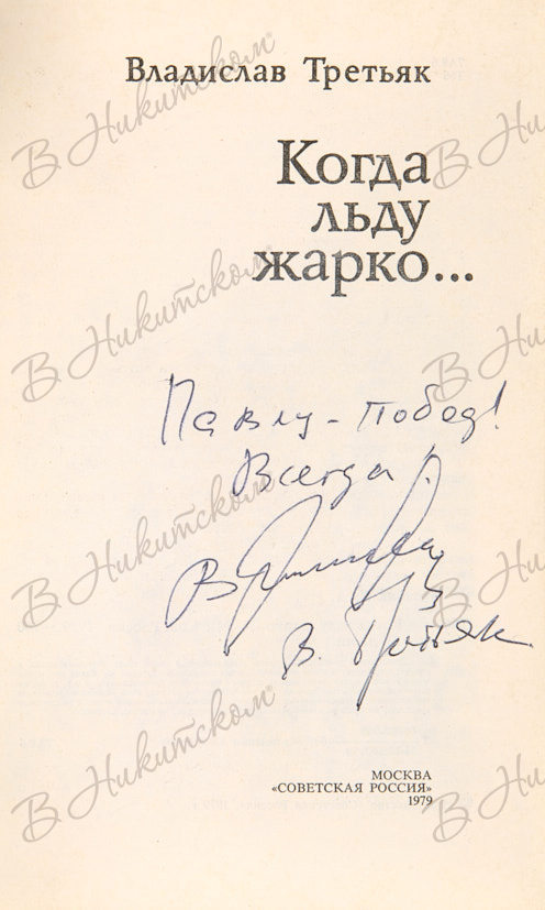 Третьяк, В. [Автограф]. Когда льду жарко… М.: «Советская Россия», 1979.
