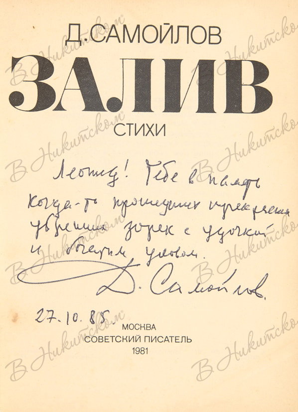 Самойлов, Д. [Автограф]. Залив. М.: «Советский писатель», 1981.