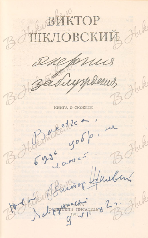 Шкловский, В. Энергия заблуждения. Книга о сюжете. М.: «Советский писатель», 1981.