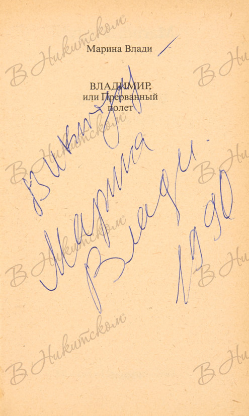 Влади, М. [Автограф]. Владимир, или прерванный полёт. М.: «Прогресс», 1989.