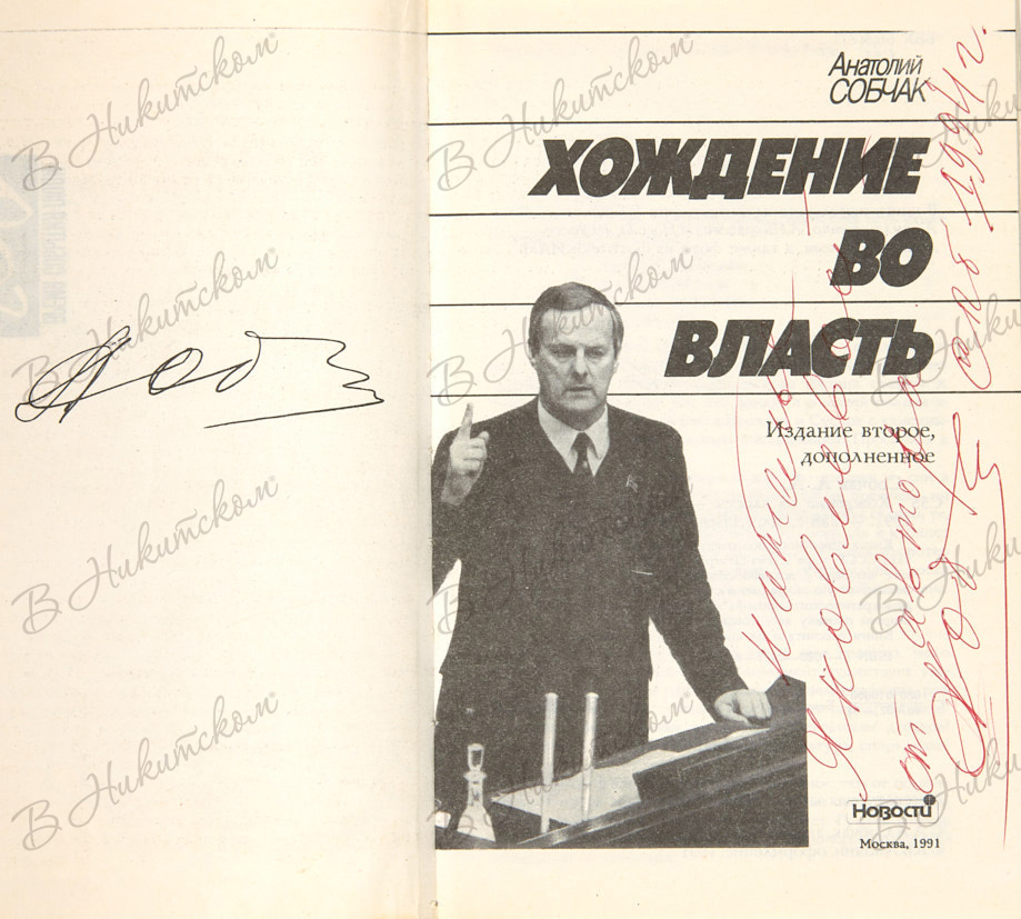Собчак, А. [Автограф]. Хождение во власть. Издание 2-е. М., 1991.