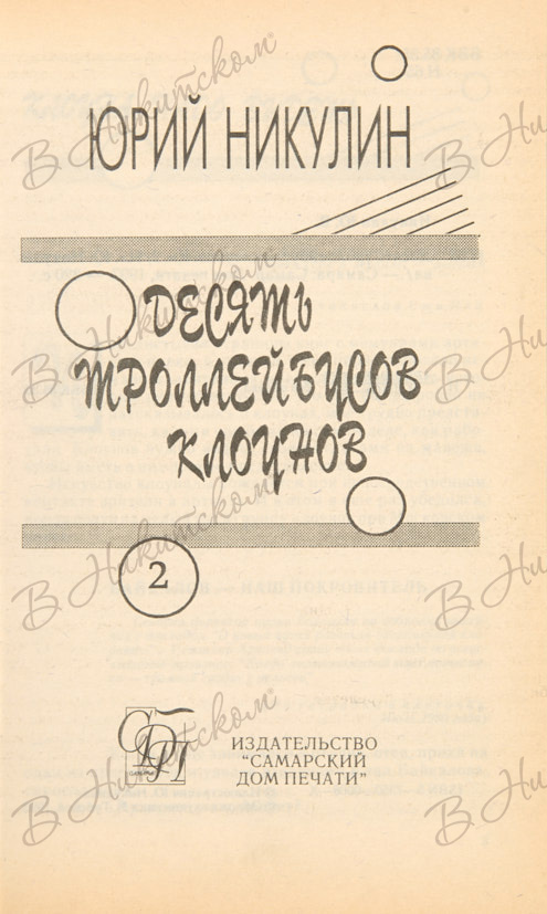 Никулин, Ю. [Автограф и рисунок-шарж]. Десять троллейбусов клоунов. Самара: Издательство «Самарский дом печати», 1993.