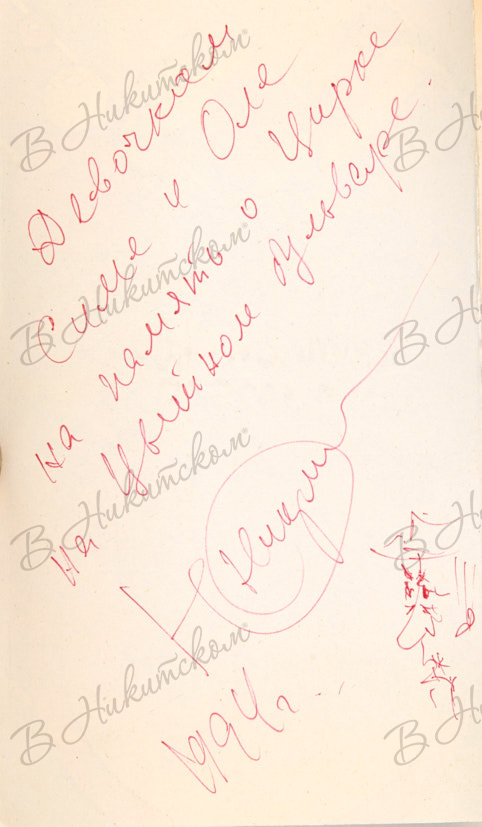 318, [2] с. 20 х 12,6 см. В иллюстрированной издательской ламинированной обложке. В очень хорошем состоянии. На обороте лицевой сторонки обложки автограф Юрия Никулина: «Девочкам / Симе и Оле / на память о Цирке / на Цветном бульваре. / Ю Никулин / 1994 г.».