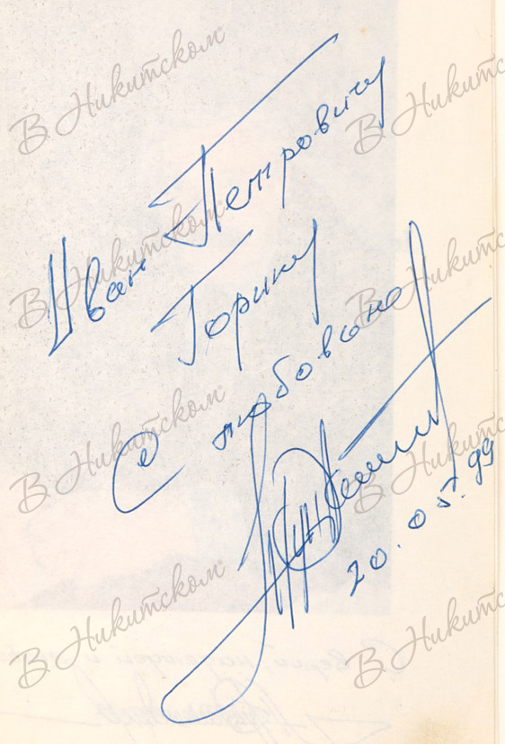 211, [5] с. 19,8 х 12,8 см. В иллюстрированной издательской обложке. Корешок отходит от блока. Потертости обложки. Следы залития нижнего поля блока. На обороте фронтисписа дарственная надпись: «Ивану Петровичу / Горину / С любовью / АРуцкой / 20.05.99».