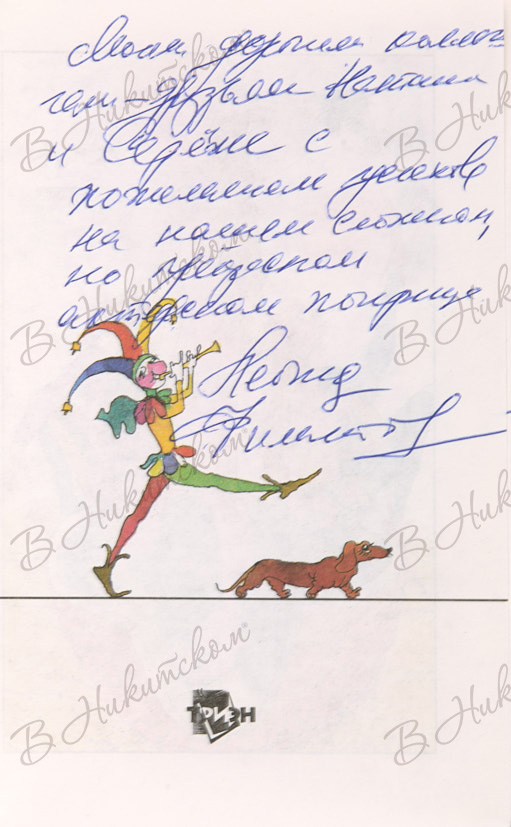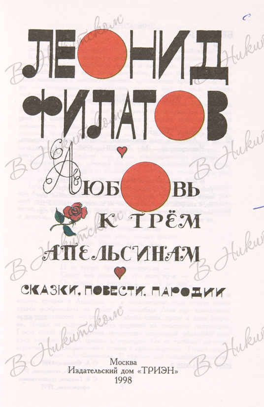 Филатов, Л. [Автограф]. Любовь к трём апельсинам. Сказки. Повести. Пародии. М.: Издательский дом «Триэн», 1998.