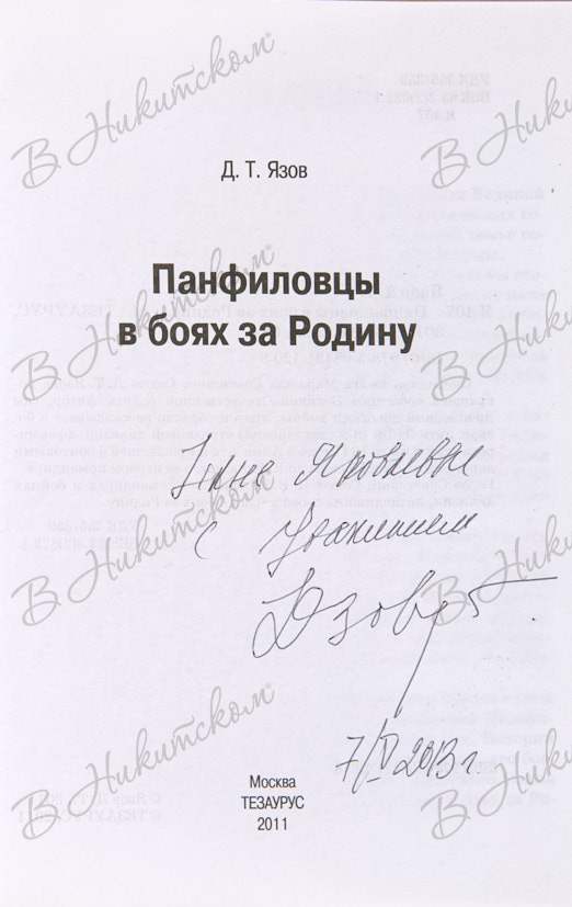 Язов, Д.Т. [Автограф]. Панфиловцы в боях за Родину. М.: «Тезаурус», 2011.