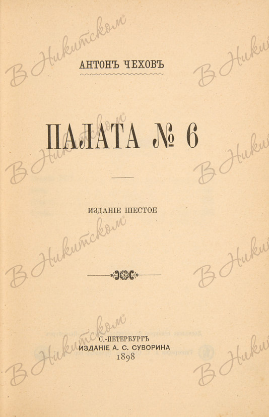 Чехов, А. Палата № 6. 6-е изд. СПб.: Изд. А.С. Суворина, 1898.