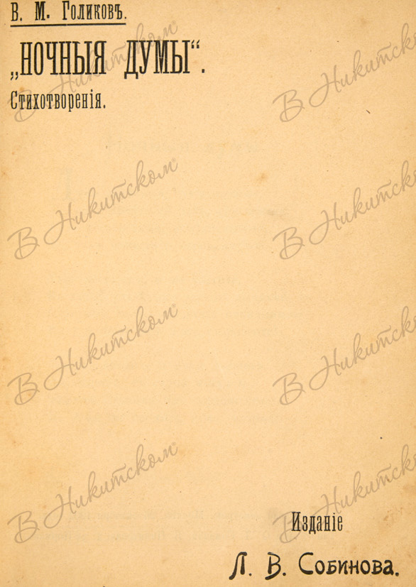 Голиков, В.М. Ночные думы. Стихотворения. [М.]: Изд. Л.В. Собинова, 1902.
