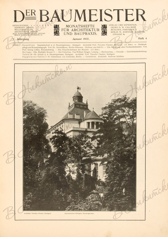[Строитель. Ежемесячный журнал об архитектуре и строительной практике]. Der Baumeister. Monatshefte für Architektur und Baupraxis. Берлин; Мюнхен: G.D.W. Callwey, 1905-1907.