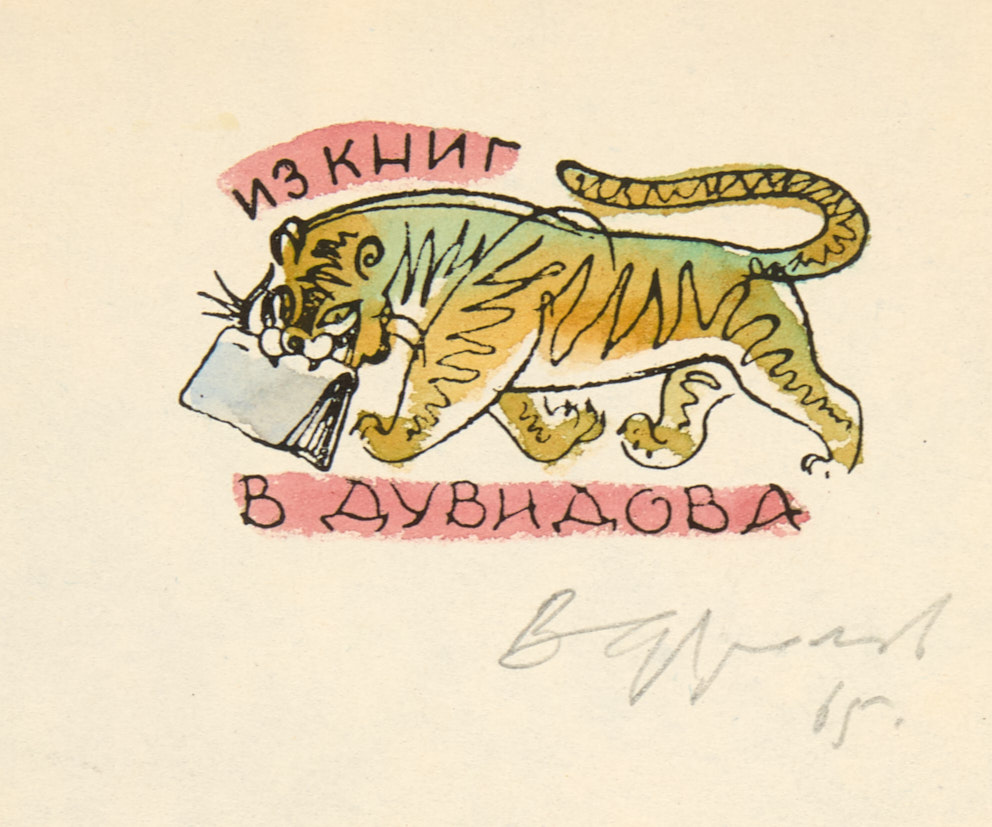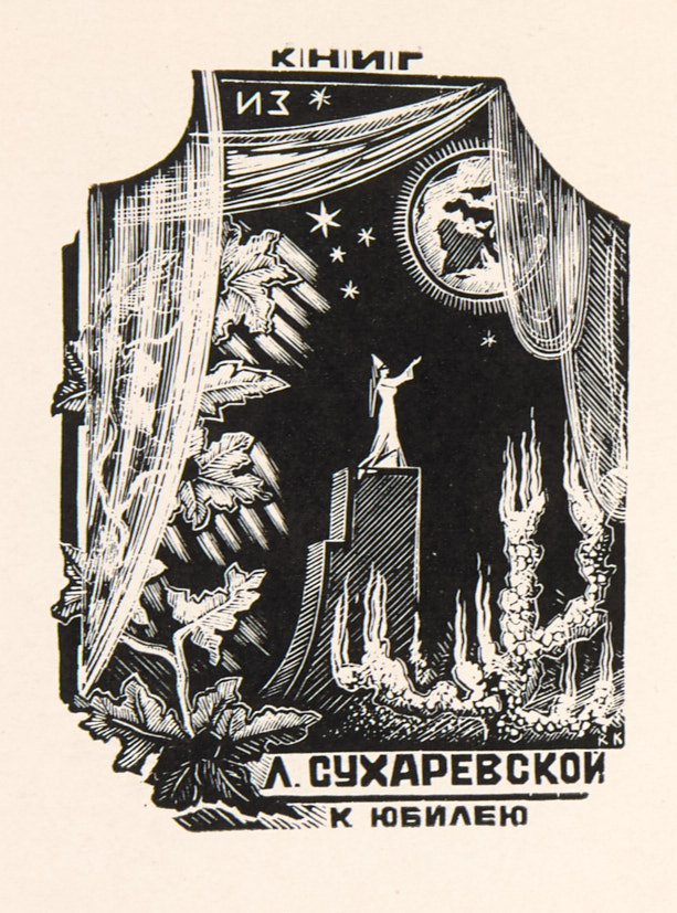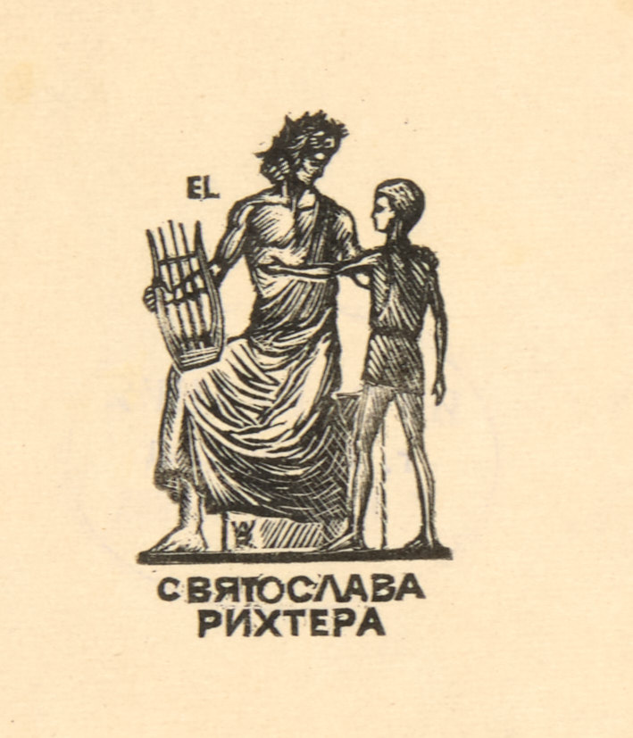 Лот из 4 экслибрисов советских художников, музыкантов и актеров. Экслибрисы В. Дувидова, С. Рихтера, Л. Сухаревской, Н. Е. Минаевой. 1960-е гг. Ксилографии, 8×7; 8×9; 10,2×7,5; 10×9 см.