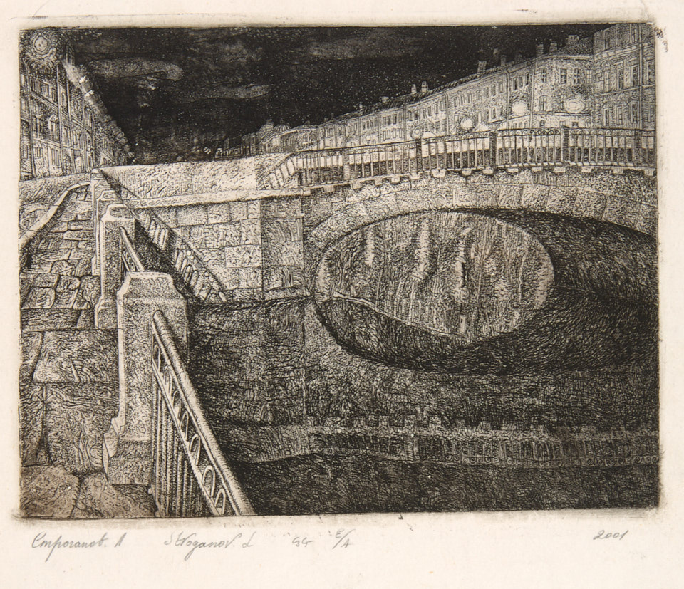 Лот из 2 офортов с фантастическими видами Петербурга. 2001, 2003 гг. Офорт, 11,5×14,5; 13×14 см.
