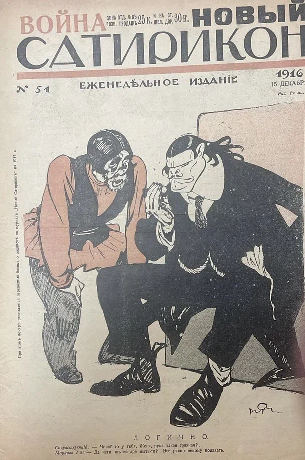 Оригинал иллюстрации для журнала «Новый Сатирикон» 1916 г. № 51. Опубликован в цвете. Справа внизу авторская подпись кистью.