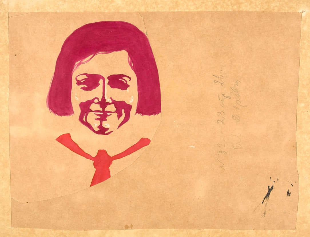 На обороте портрет пионерки. Справа внизу авторская монограмма: АГ.