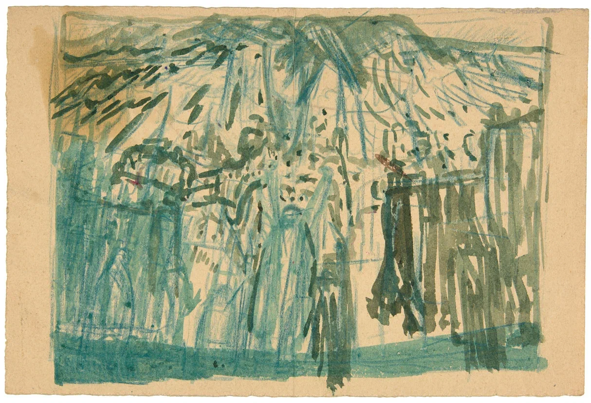 На обороте два эскиза «Крепость в горах» (карандаш).