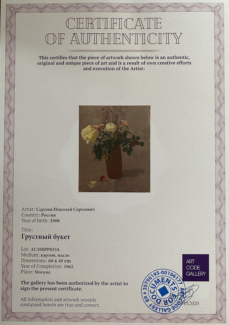 Грустный букет. 1962. Картон, масло, 60×49 см.