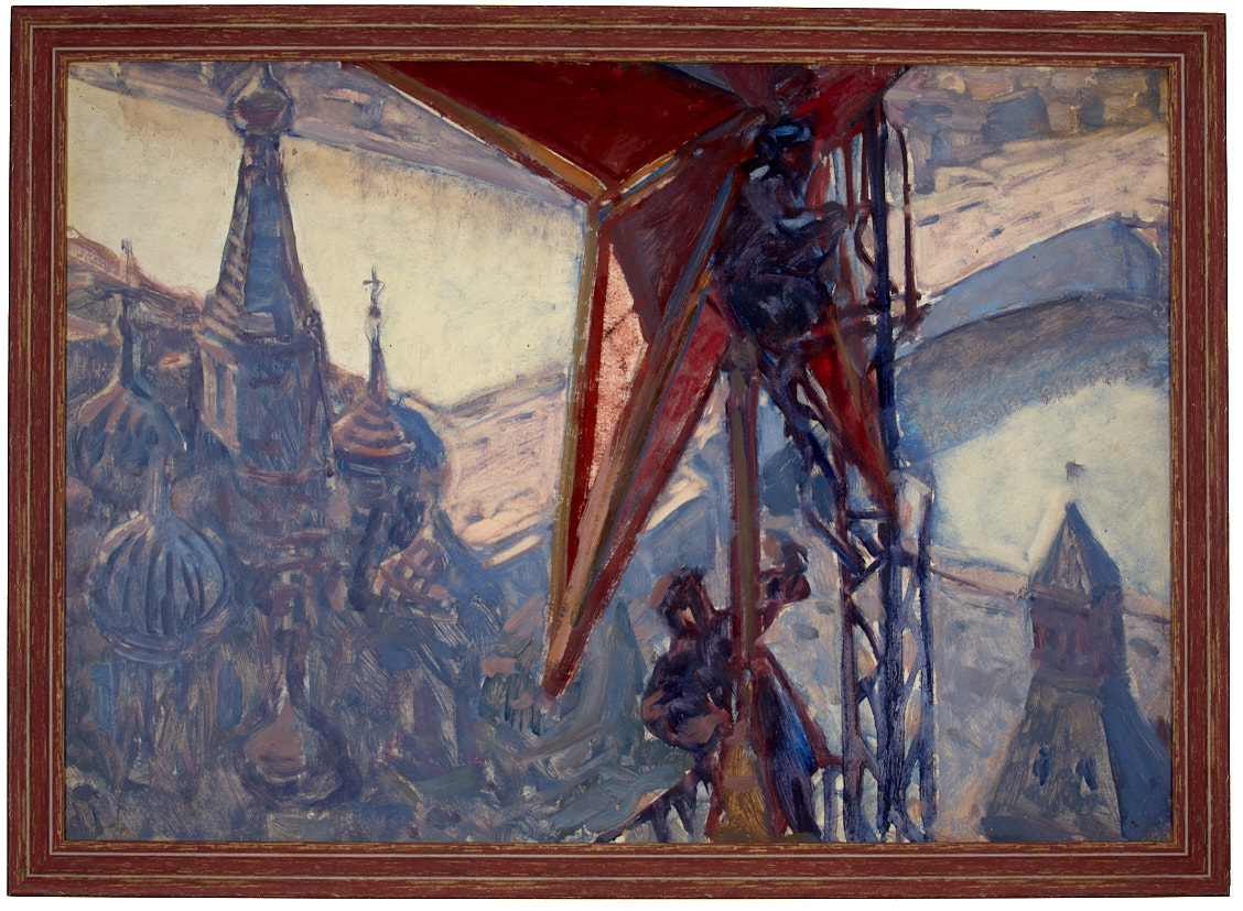 Над Москвой. Монтаж рубиновых звезд. 1960-е гг. Картон, масло. 50×67 см.