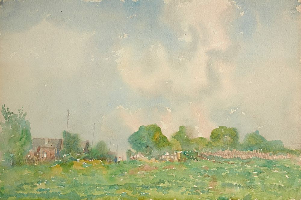 Пейзаж с телеграфными столбами. 1970-е гг. Бумага, акварель, 39×57,5 см.