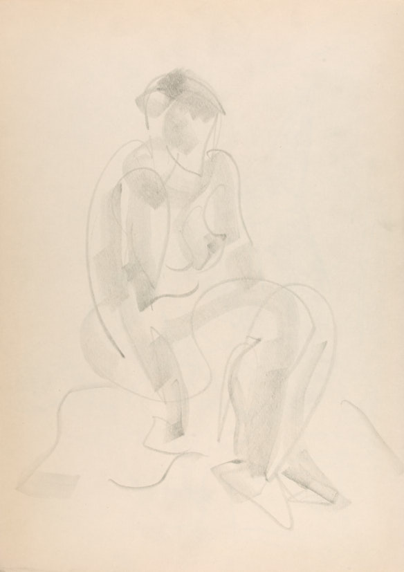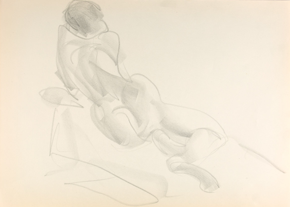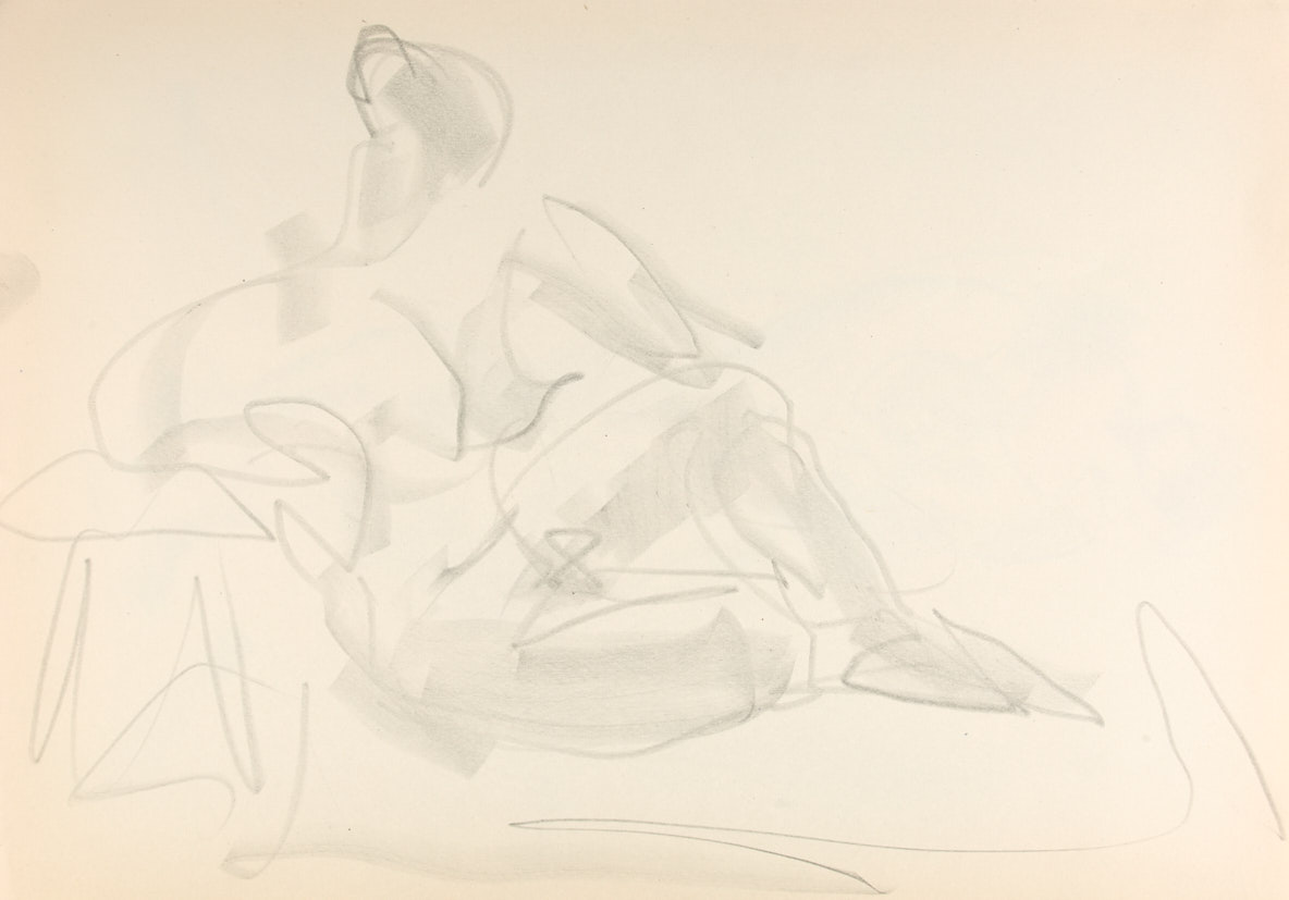 Лот из 5 рисунков. Лежащие и сидящие модели. 1970-е гг. Бумага, карандаш, 43×30,5 см.