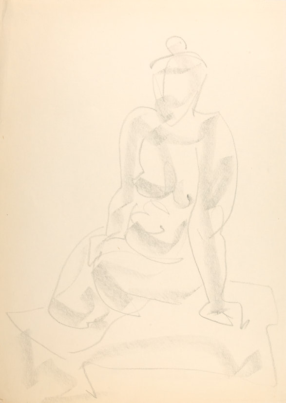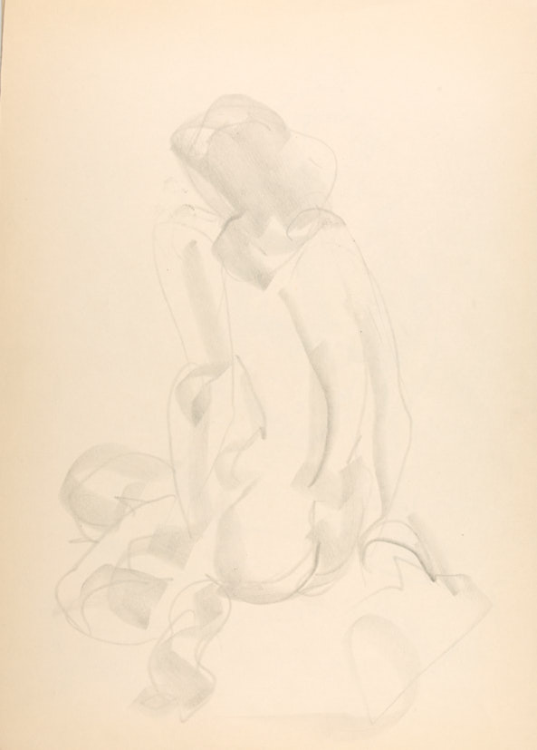 Лот из 5 рисунков. Стоящие и сидящие модели. 1970-е гг. Бумага, карандаш, 43×30,5 см.
