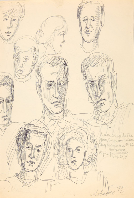 Справа внизу авторская подпись: А Лабас 77. На обороте наброски мужских и женских голов и подпись: А Лабас 72 Из собрания сына художника.