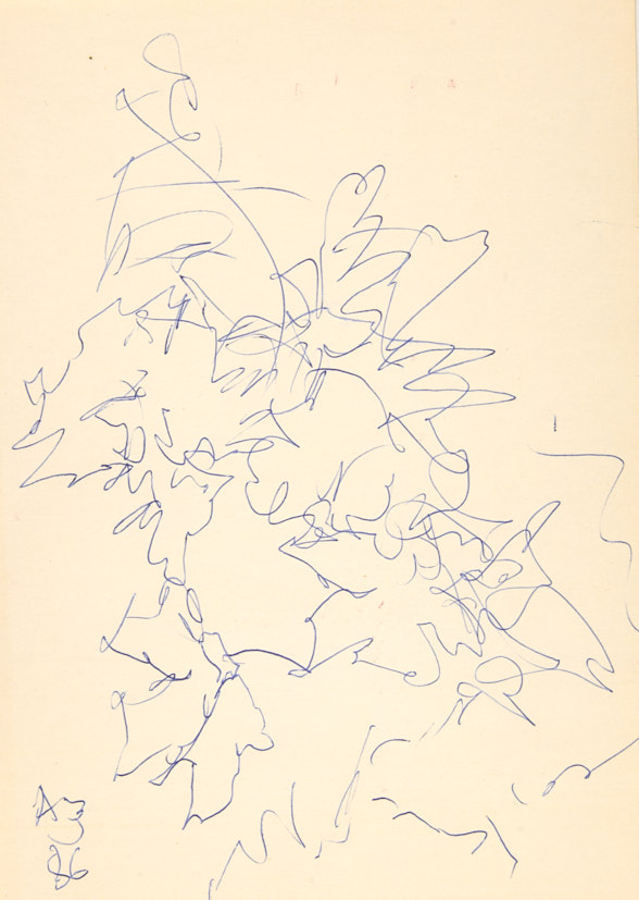 Лот из рисунка и 4 стихотворных импровизаций. 1. Рисунок: «Цветы шиповника». 1986 г. Бумага, шариковая ручка, 29×21 см.