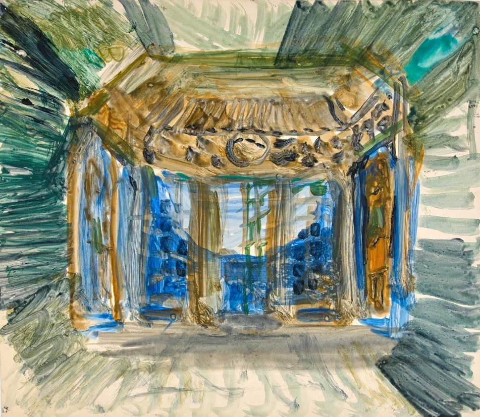 Лот из 3 эскизов театральных декораций к опере М. П. Мусоргского «Хованщина». 1970-е гг. Картон, гуашь, 31,2×36 см.