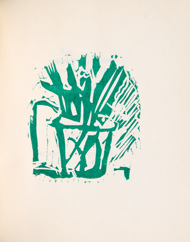 Издательская иллюстрированная обложка и суперобложка из пергамента. След от перегиба блока. С тремя гравюрами на дереве и 14 линогравюрами.