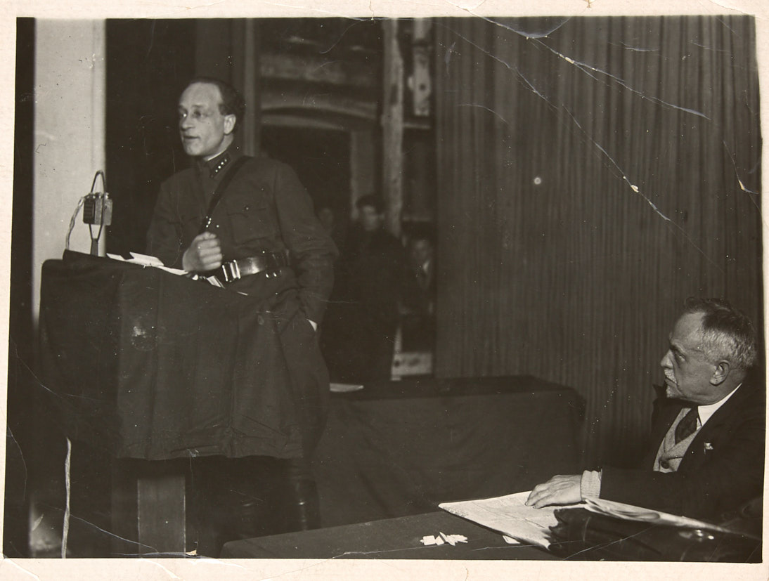 Моссоюзфото. Заседание Совета по борьбе с беспризорностью. Январь 1934 г. (на фотографии один из организаторов системы здравоохранения в СССР Н. Семашко). Фотография, 16,5×22,7 см.