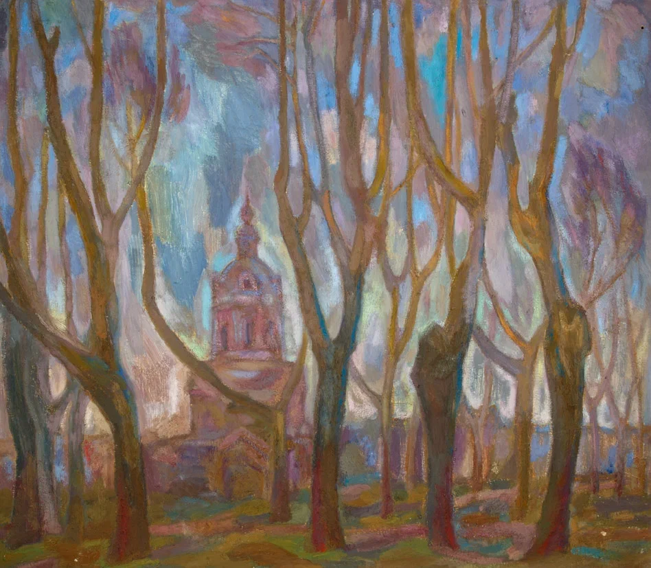 В Даниловском монастыре. 1980 г. Холст, масло, 67×77 см.