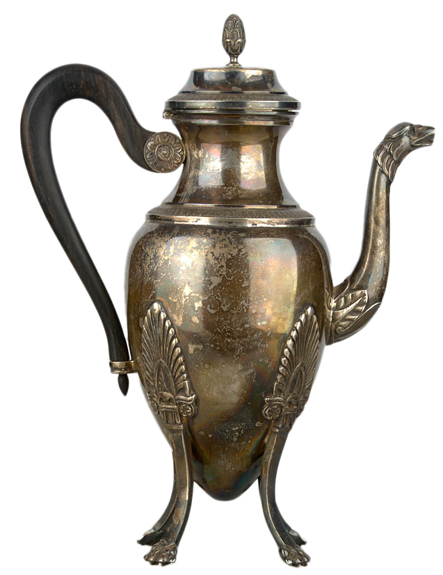Кофейник в стиле ампир. Франция. 1820-е гг. Серебро, литье чеканка, золочение, 28×22 см.