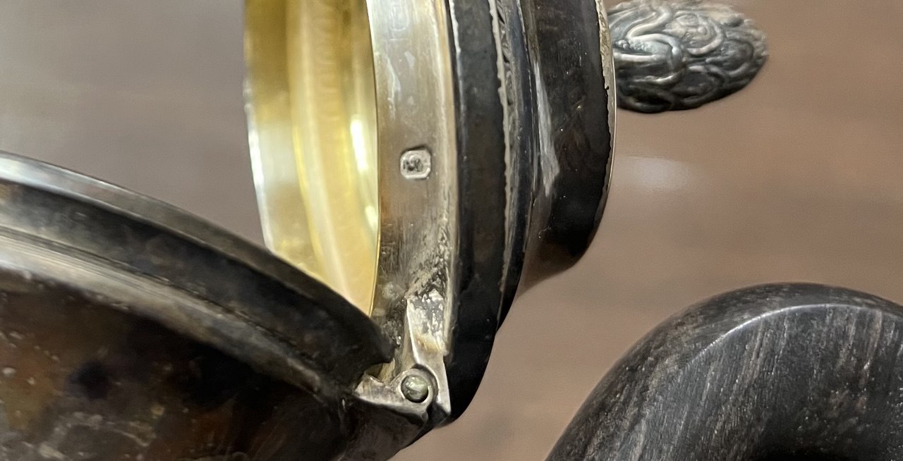 Ручка: черное дерево. Вес 864 г. На ответе крышки клеймо Парижской пробирной палаты.