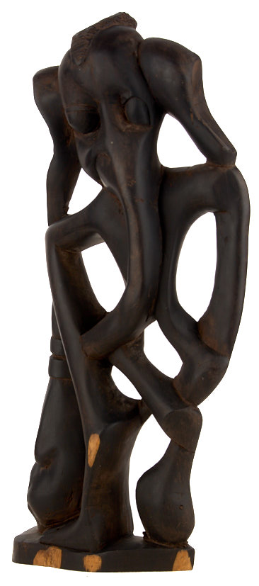 Статуэтка «Ndoto tembo mdogo» ( суахили «Сны маленького слона»). Племя Маконде, Мозамбик (Makonde, Mozambique), стиль Шетани (Shetani). Конец ХX в. Материал: Африканское чёрное дерево (Dalbergia melanoxylon (Mpingo, African Blackwood), 30×13 см.
