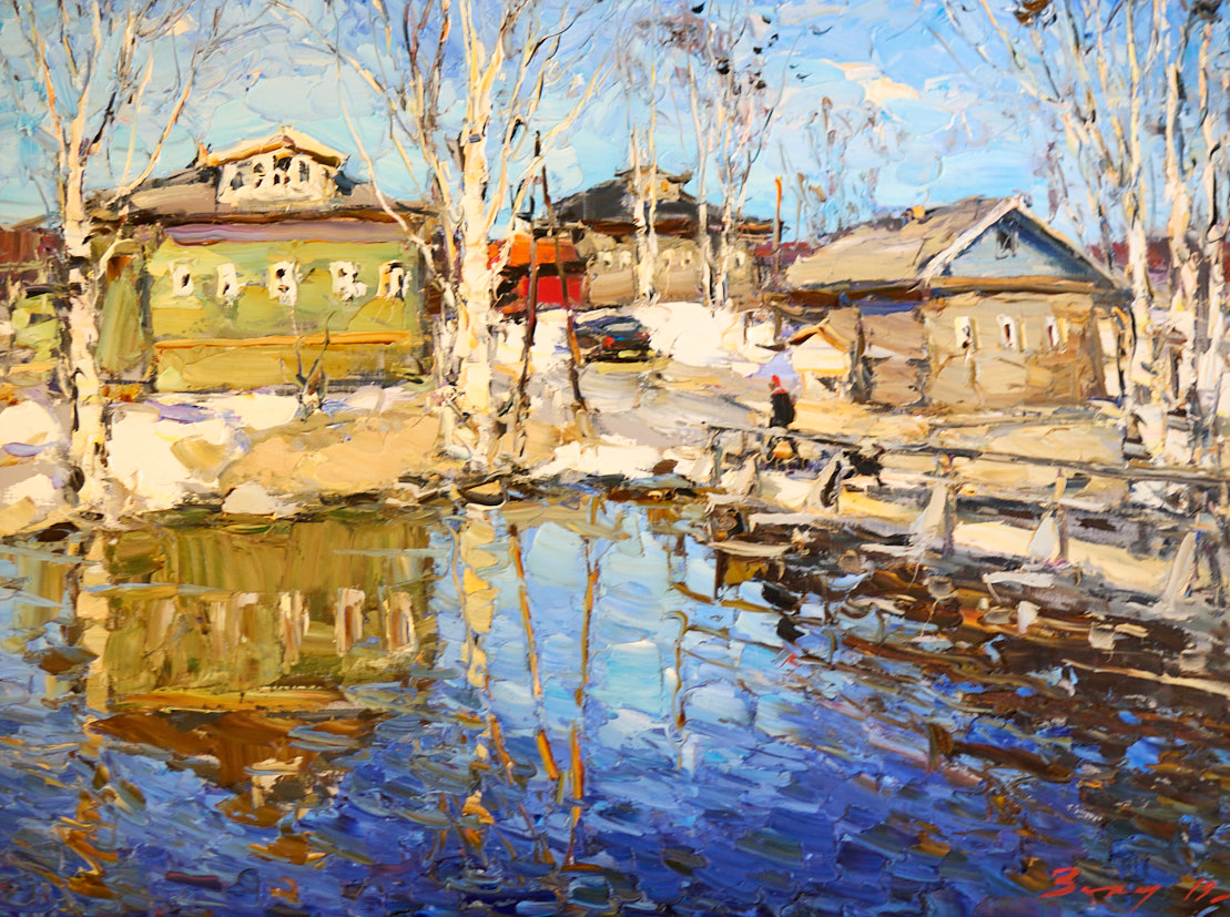 Весна в деревне. 2019 г. Холст, масло, 70×95 см.