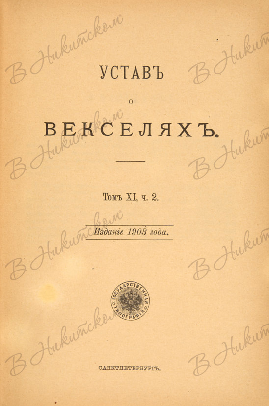 Свод законов Российской империи. Т. 11. Ч. 2. Устав о векселях. СПб.: Государственная тип., 1903.