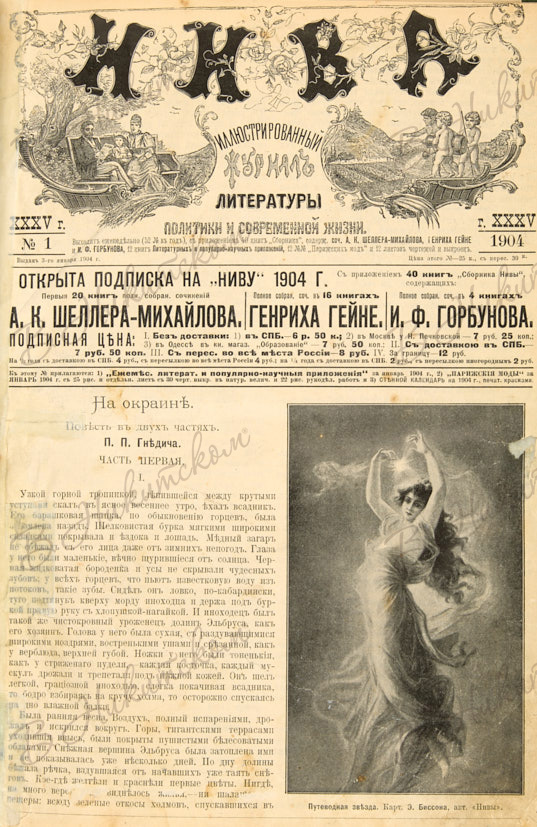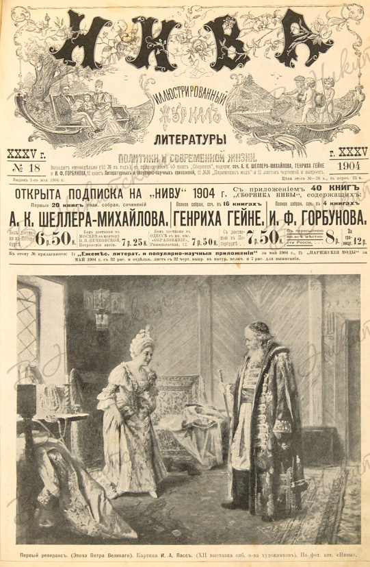 «Нива» - русский еженедельный литературный журнал середины XIX - начала XX века. Журнал позиционировал себя как журнал для семейного чтения и был ориентирован на широкий круг читателей. В издании публиковались литературные произведения, исторические, научно-популярные и различные юбилейные очерки, репродукции и гравюры картин современных художников.