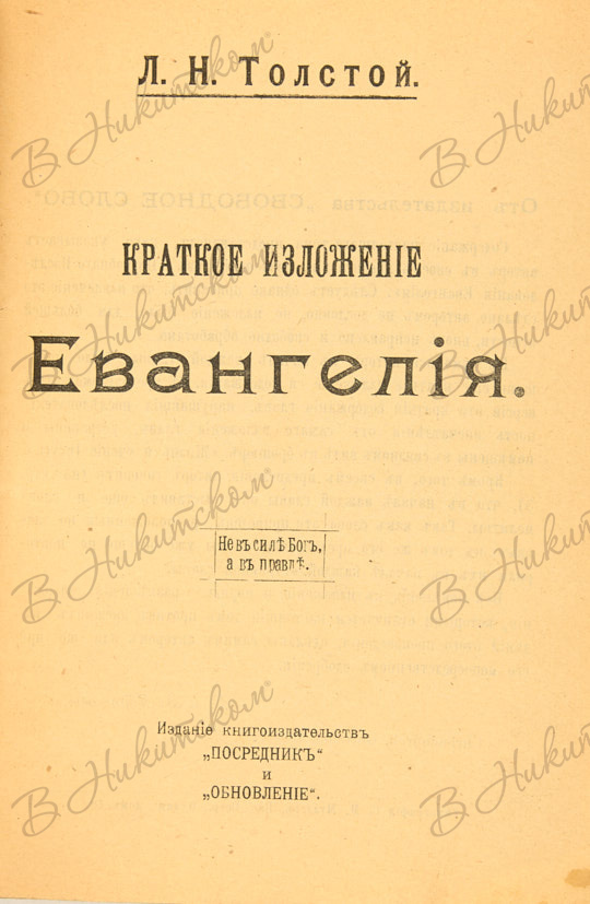 Толстой, Л.Н. Краткое изложение Евагелия. СПб.: Издание книгоиздательств «Посредник» и «Обновление», [1905].