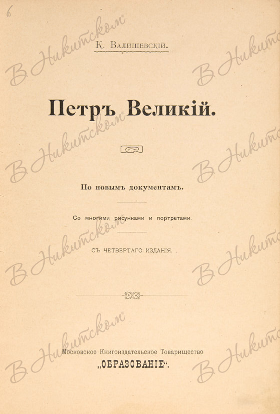 Валишевский, К.Ф. Петр Великий. По новым документам. С 4-го изд. М.: Образование, 1908.