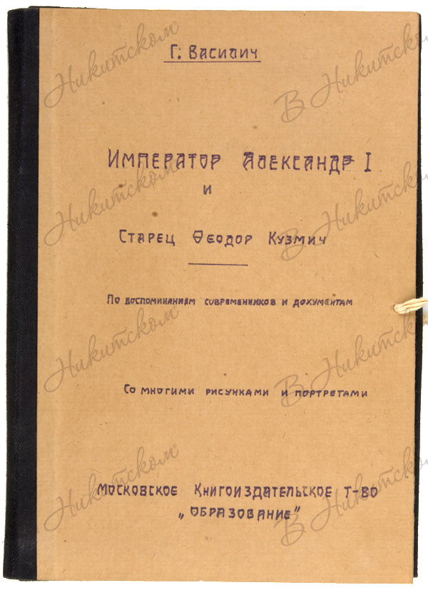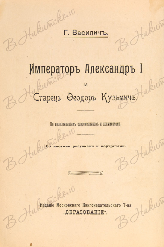 Василич, Г. Император Александр I и старец Феодор Кузьмич. По воспоминаниям современников и документами / обл худ. П. Афанасьева. М.: Образование, [1909].