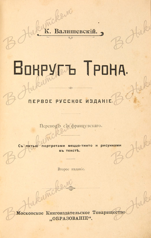 Валишевский, К. Вокруг трона / пер. с франц. 2-е изд. М.: Образование, 1910.